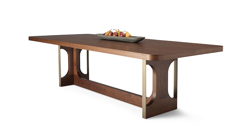 Shown in Medium Walnut with Satin Brass Inlay and optional Satin Brass base - 84W x 20D x 30H