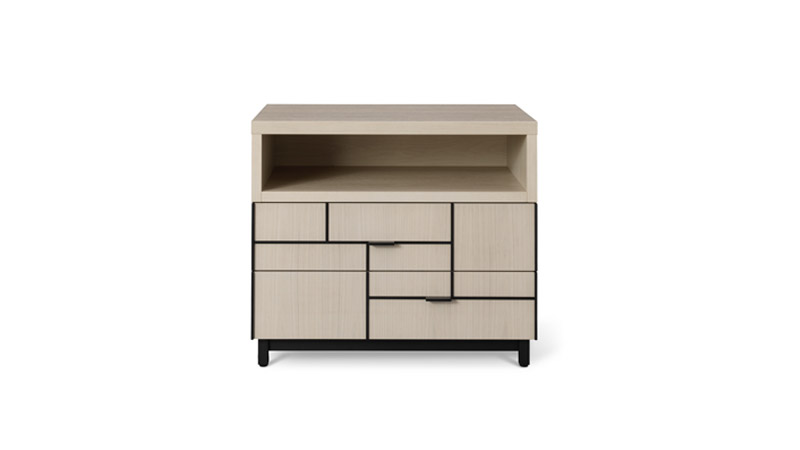 Shown in Medium Walnut. Optional Satin Lacquer fronts with Dark Bronze edge pulls - 48W x 21D x 30H