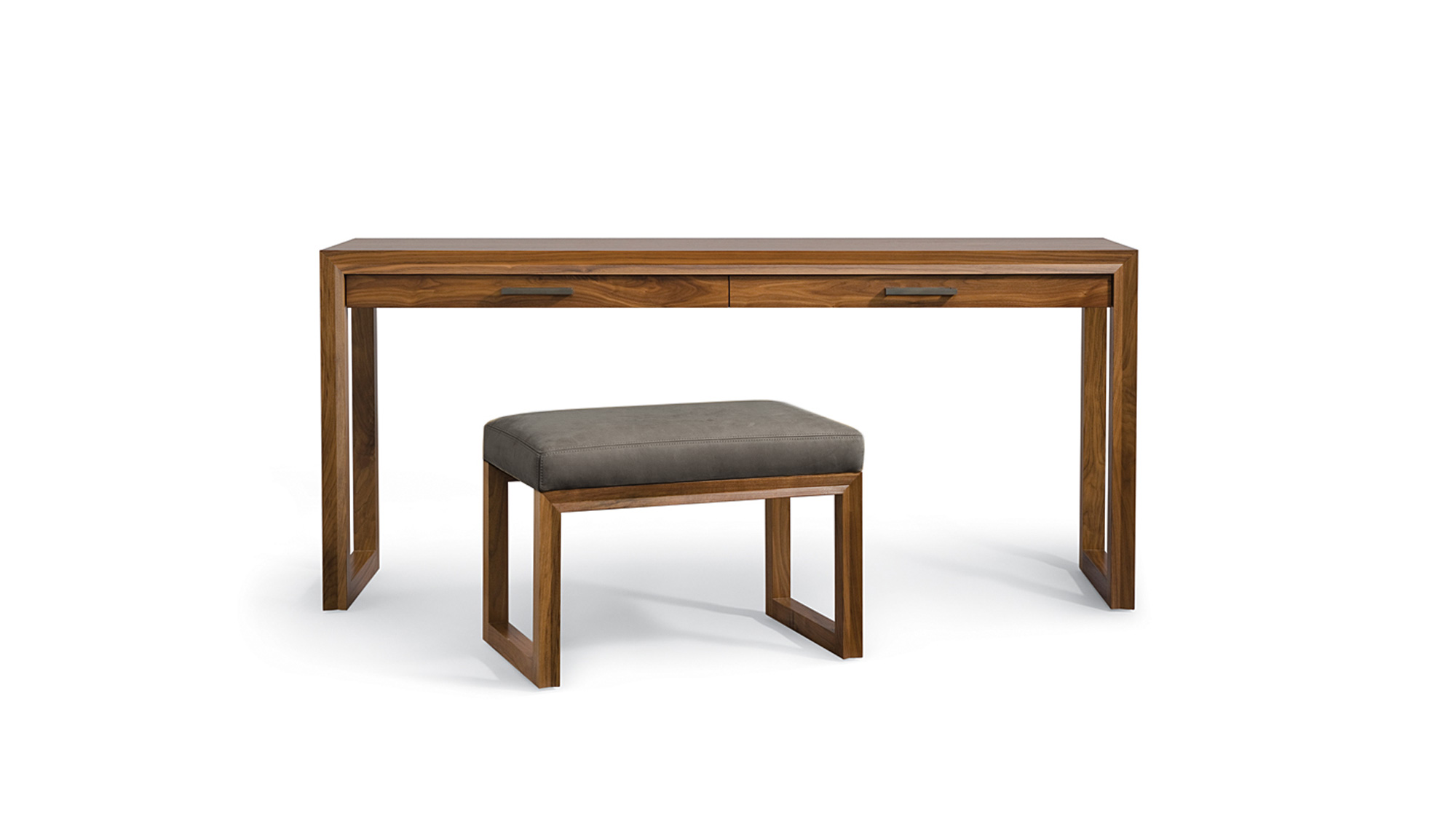Shown in Walnut with Medium Bronze metal - 96W x 42D x 29.25H