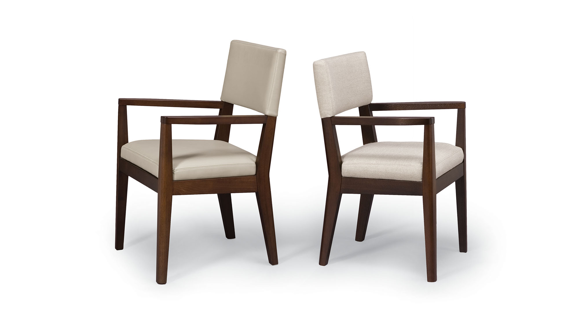 Arm Chair shown in Cerused Walnut and COL with optional top stitching - - 23 1/2W x 23D x 35H with optional top stitching