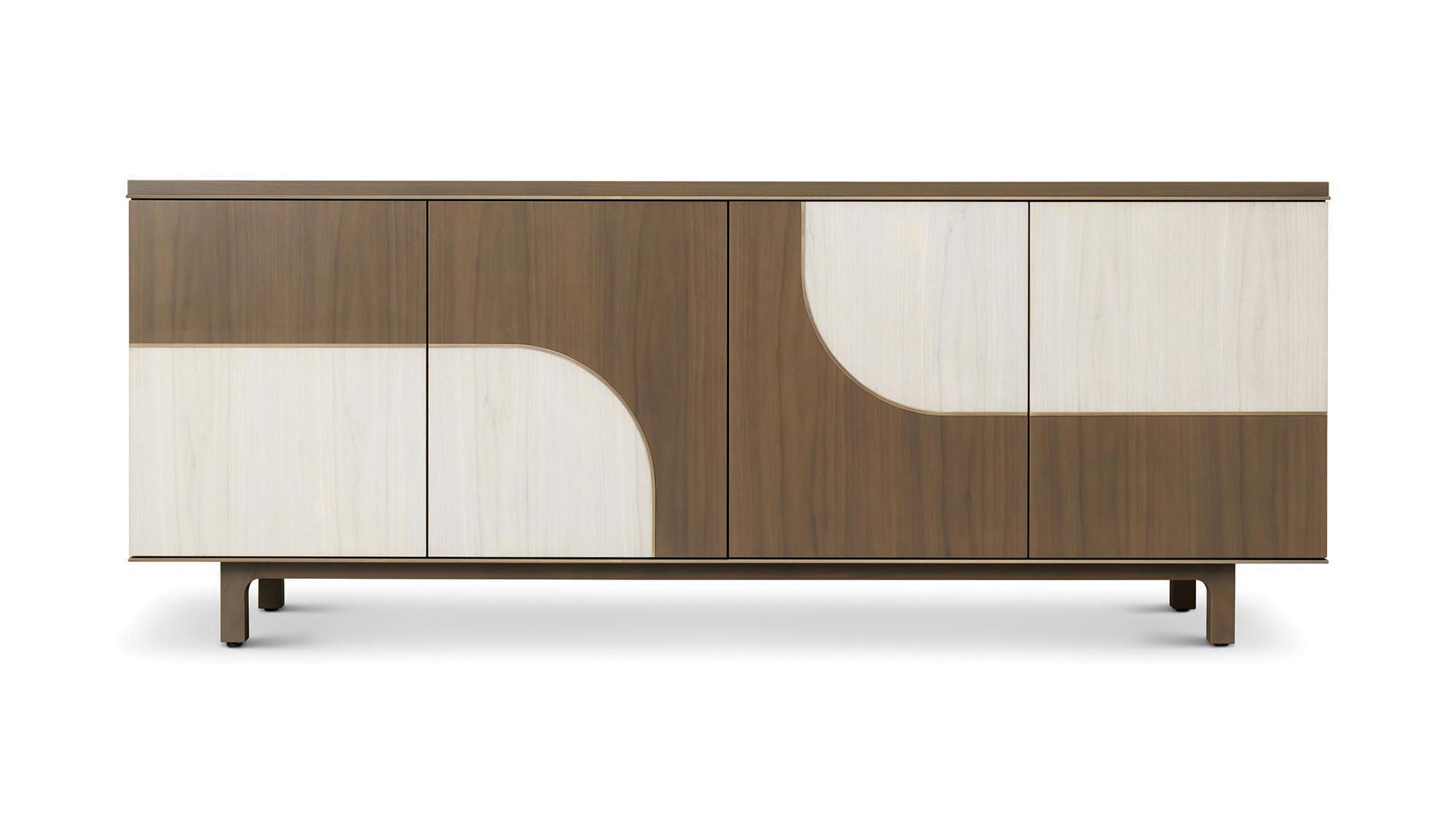 Shown in Medium Walnut with Dark Walnut base. Optional Satin Lacquer fronts with Polished Stainless Steel edge pulls - 72W x 21D x 30H