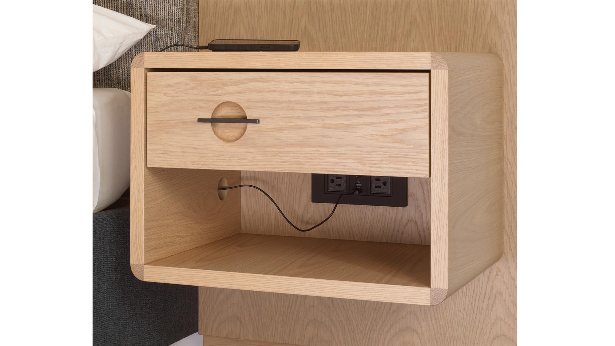 Napa Bed Cabinet 1 - linear tab pull on top edge of drawer