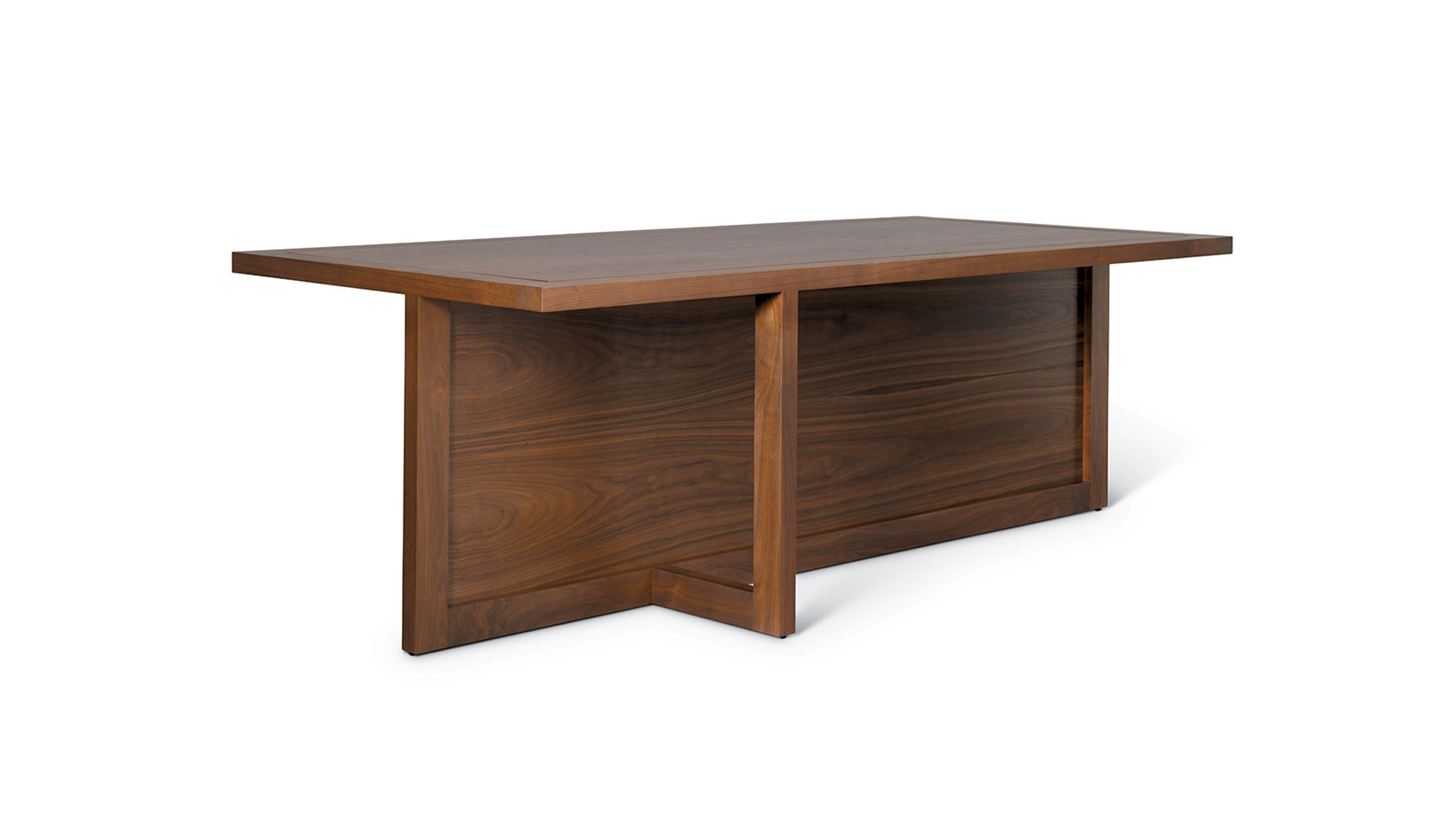 Shown in Medium Walnut w/optional solid wood top and stone inset - 84W x 42D x 29H