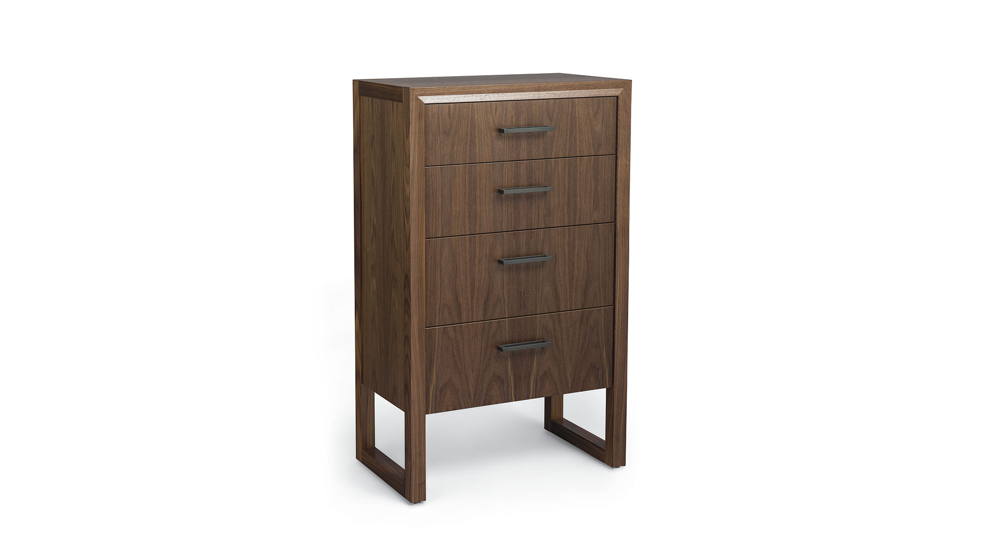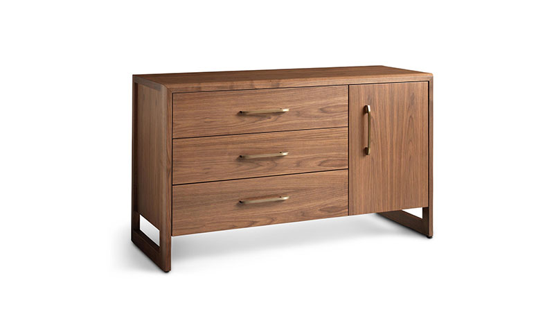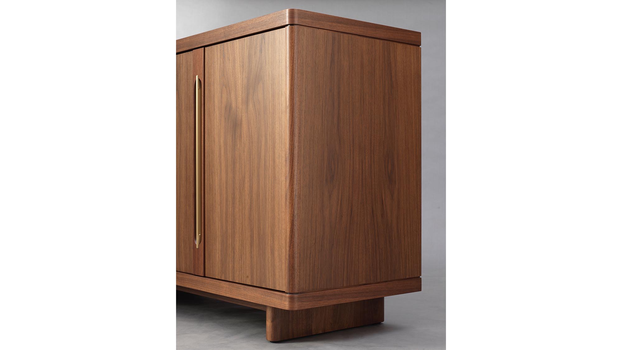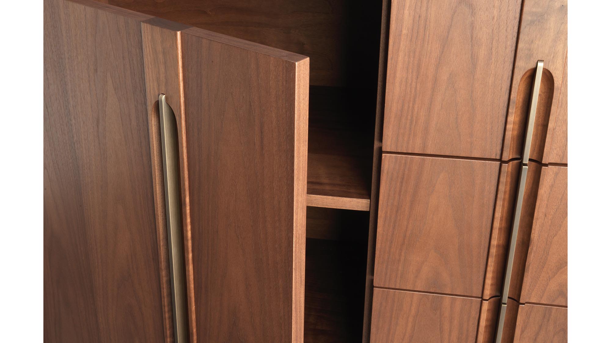 Shown in Medium Walnut. Optional Satin Lacquer fronts with Dark Bronze edge pulls - 48W x 21D x 30H