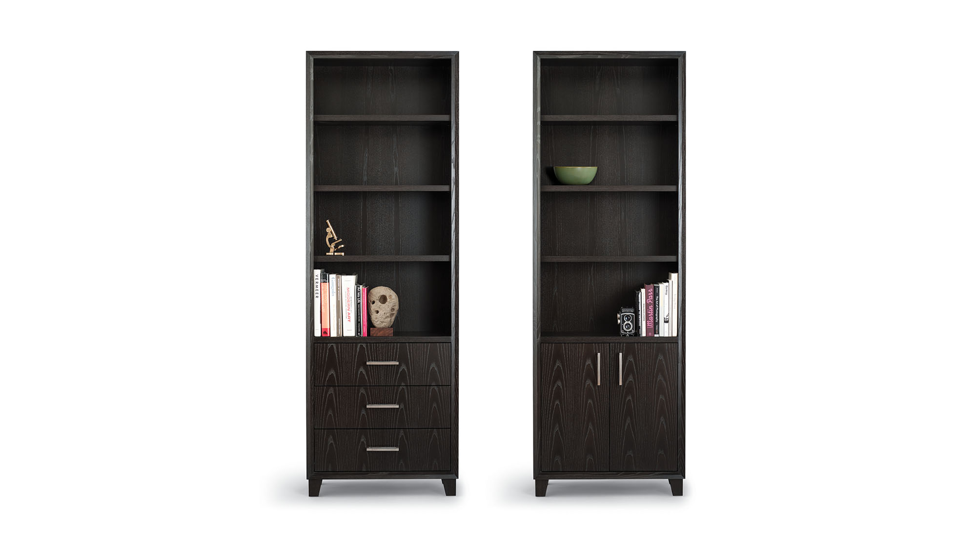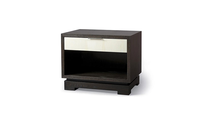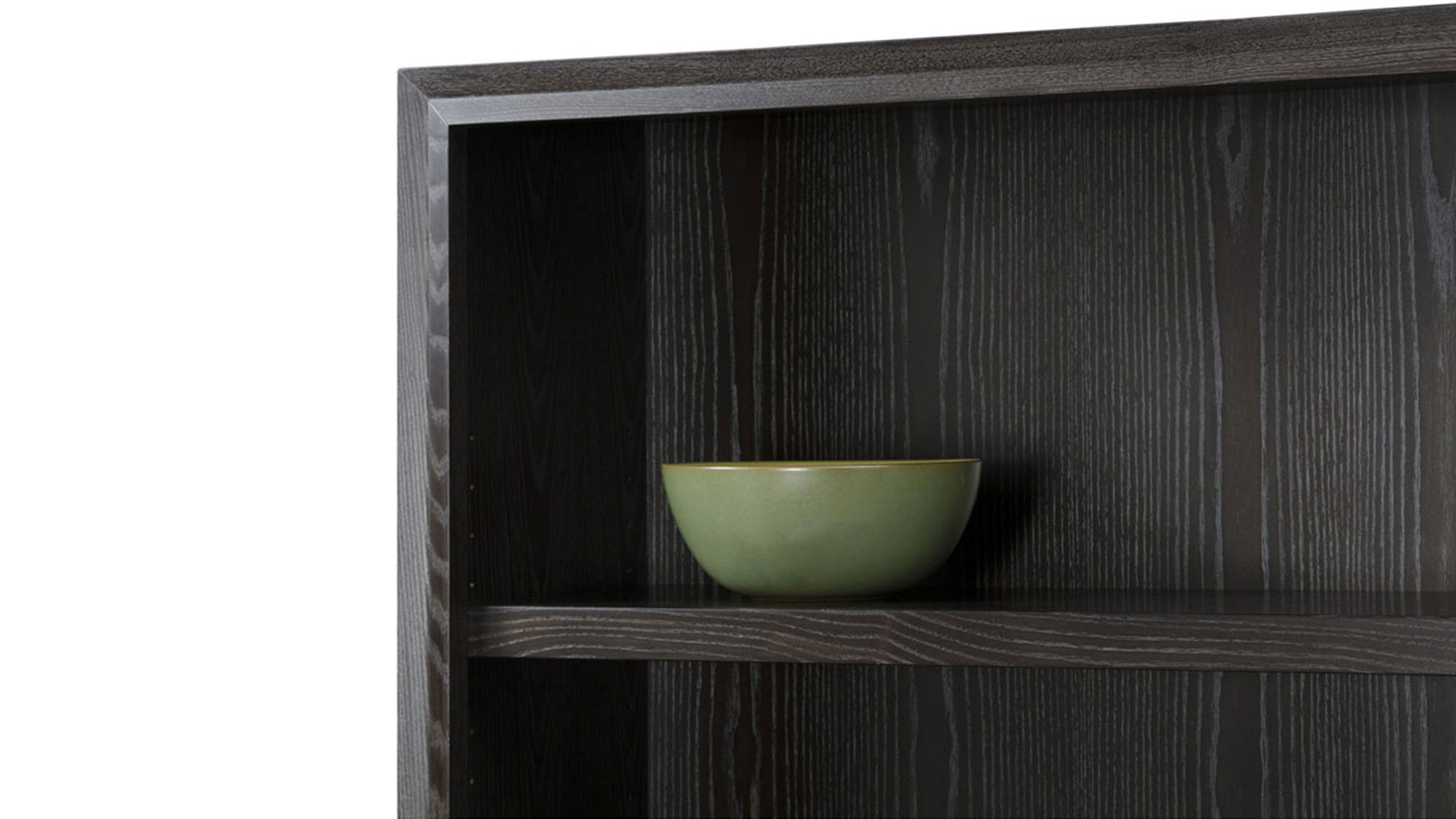 Shown in Cerused Burnt Ash with Satin Stainless Hardware
