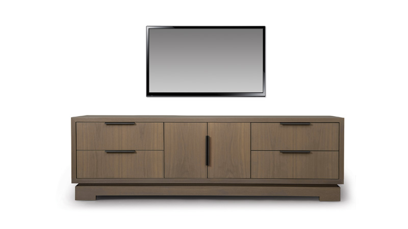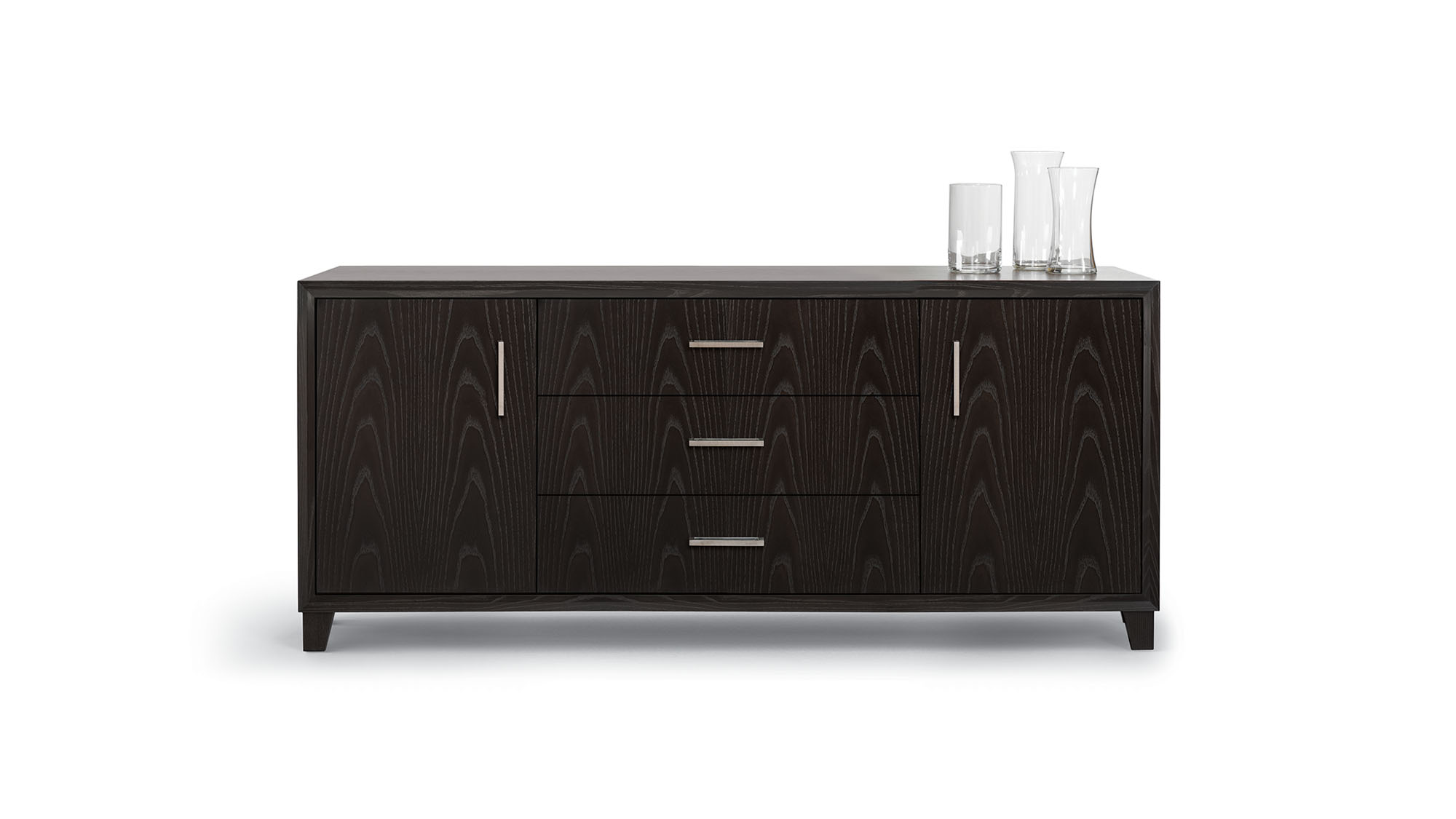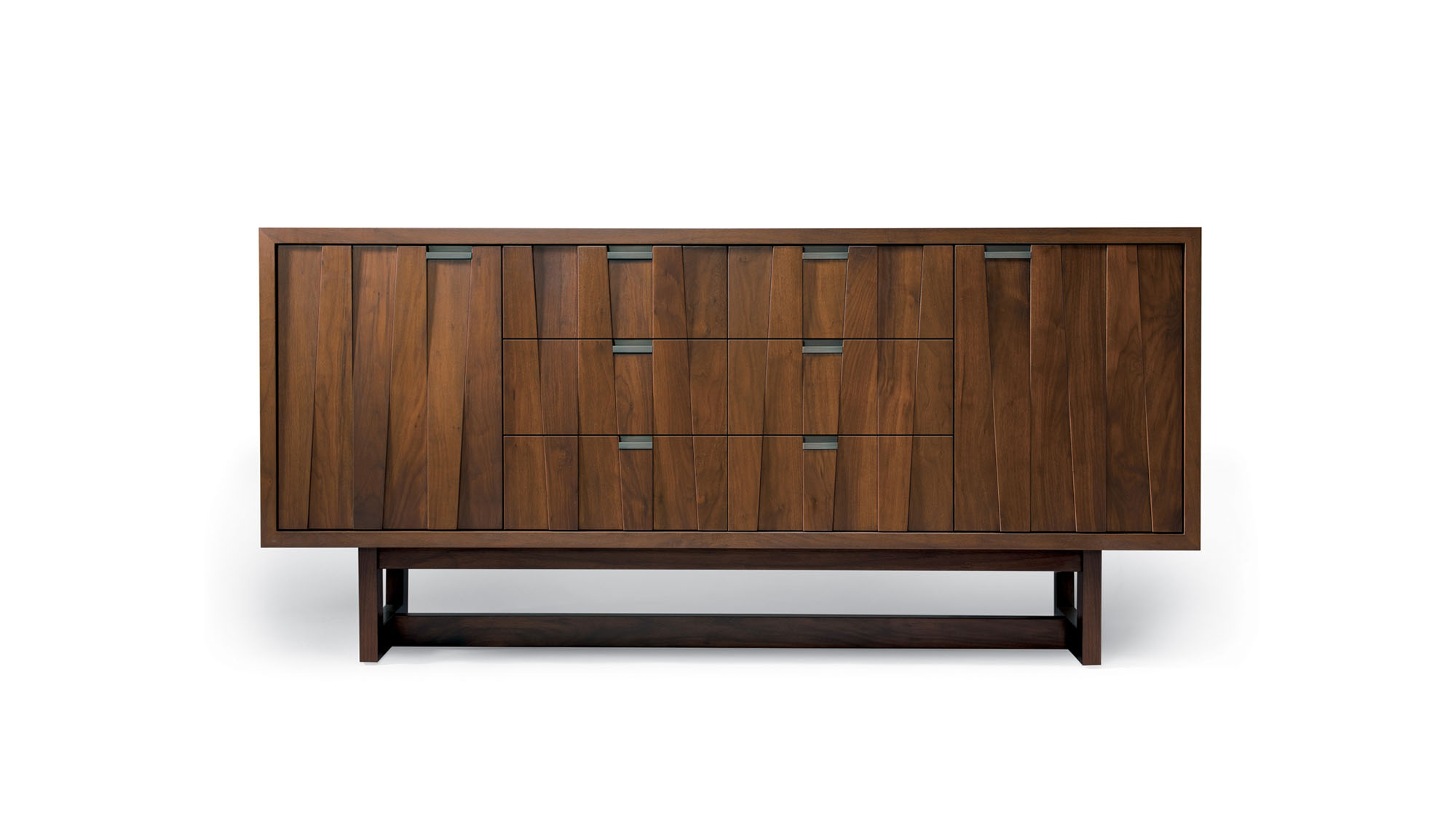 Shown in Silver Walnut with satin lacquer fronts, dark bronze hardware - 72W x 21D x 32H