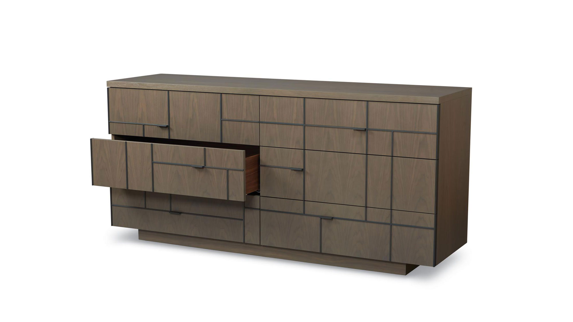 Shown in Cerused Grey Walnut with Dark Bronze hardware - 72W x 21D x 32H