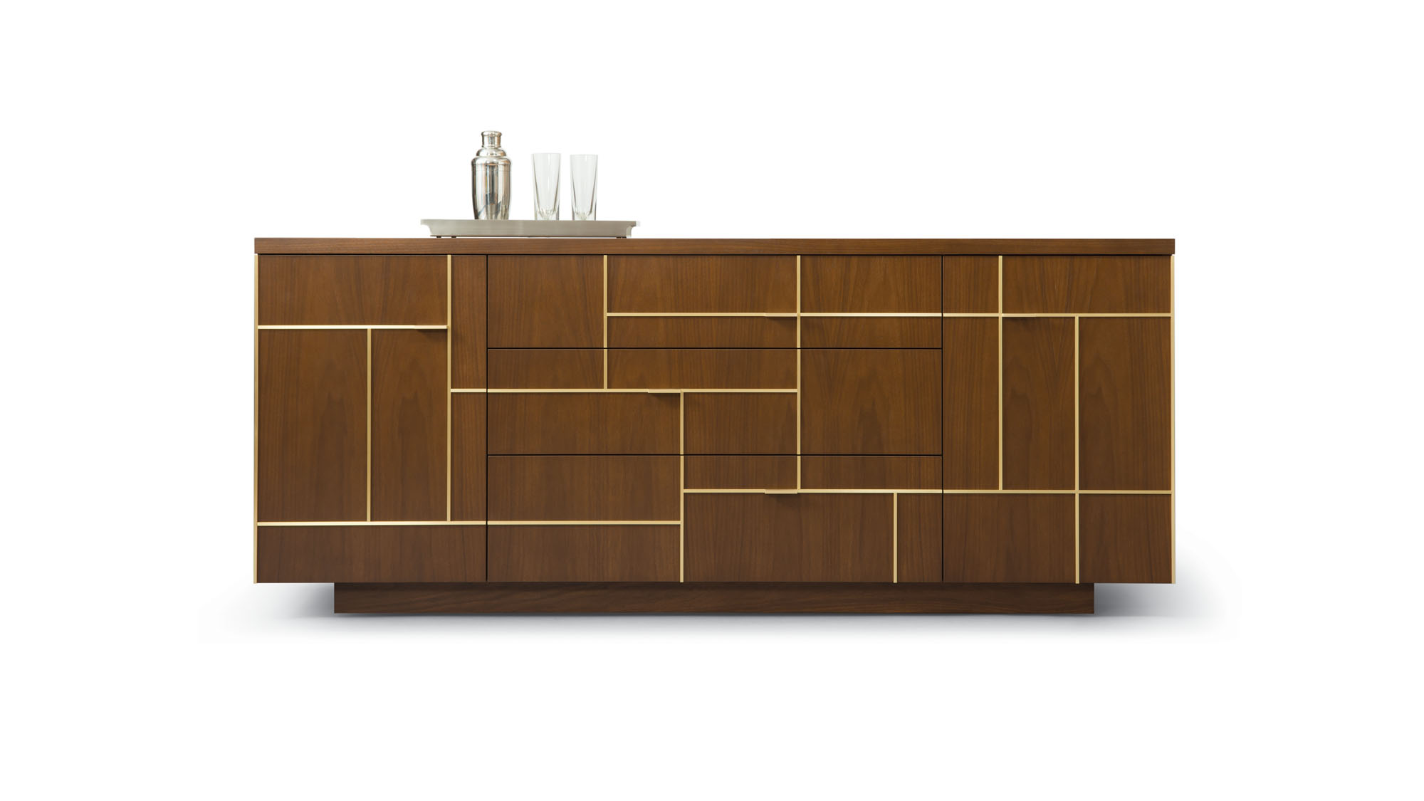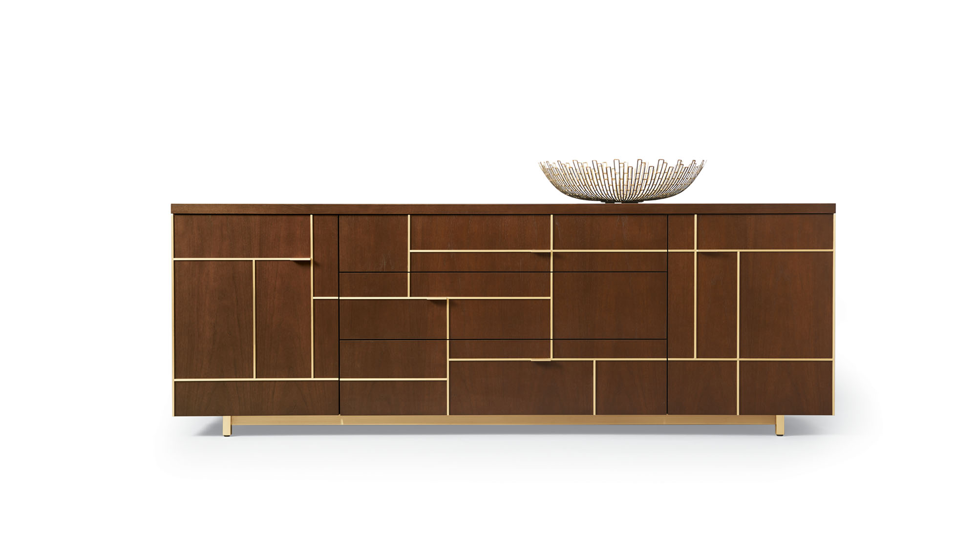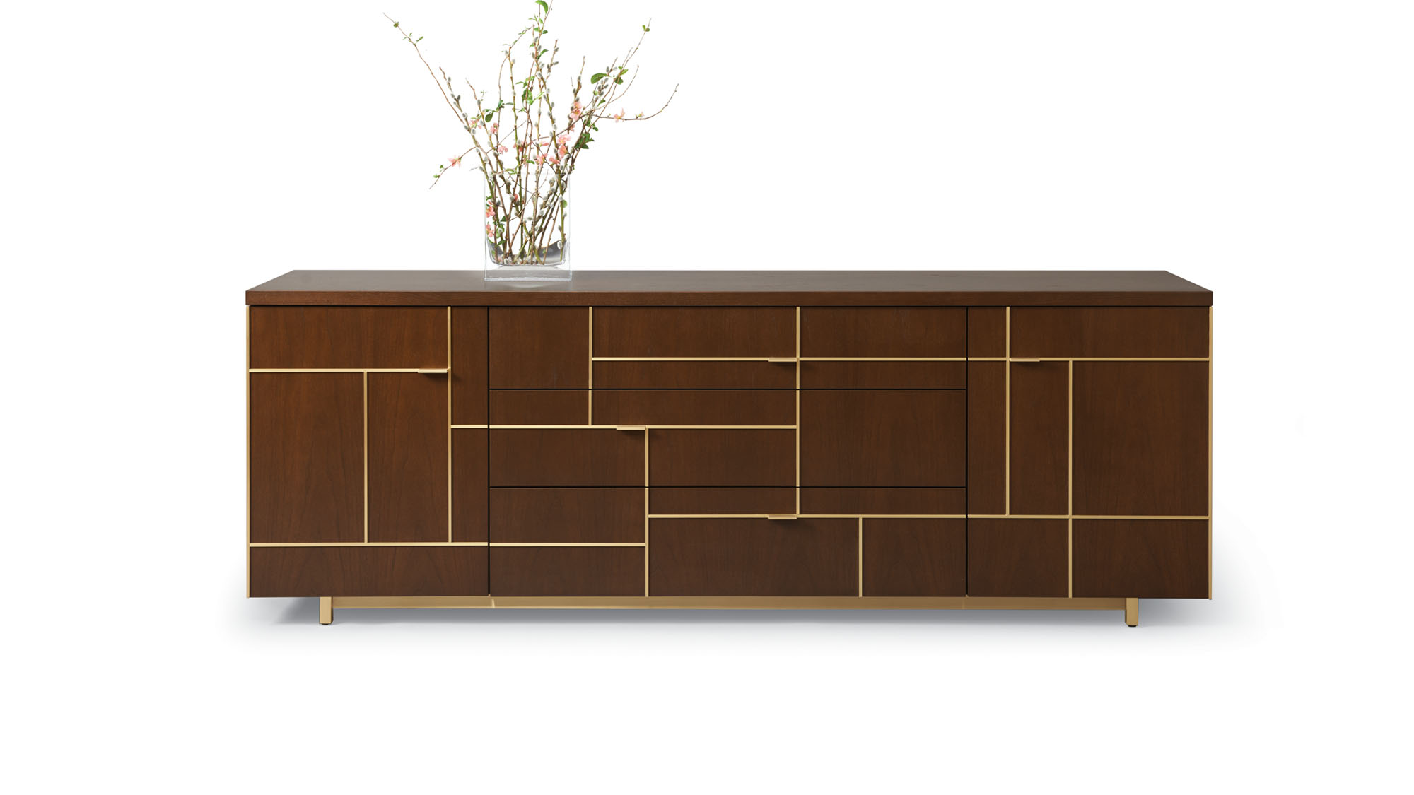Shown in Medium Walnut with Satin Brass Inlay - 72W x 20D x 30H
