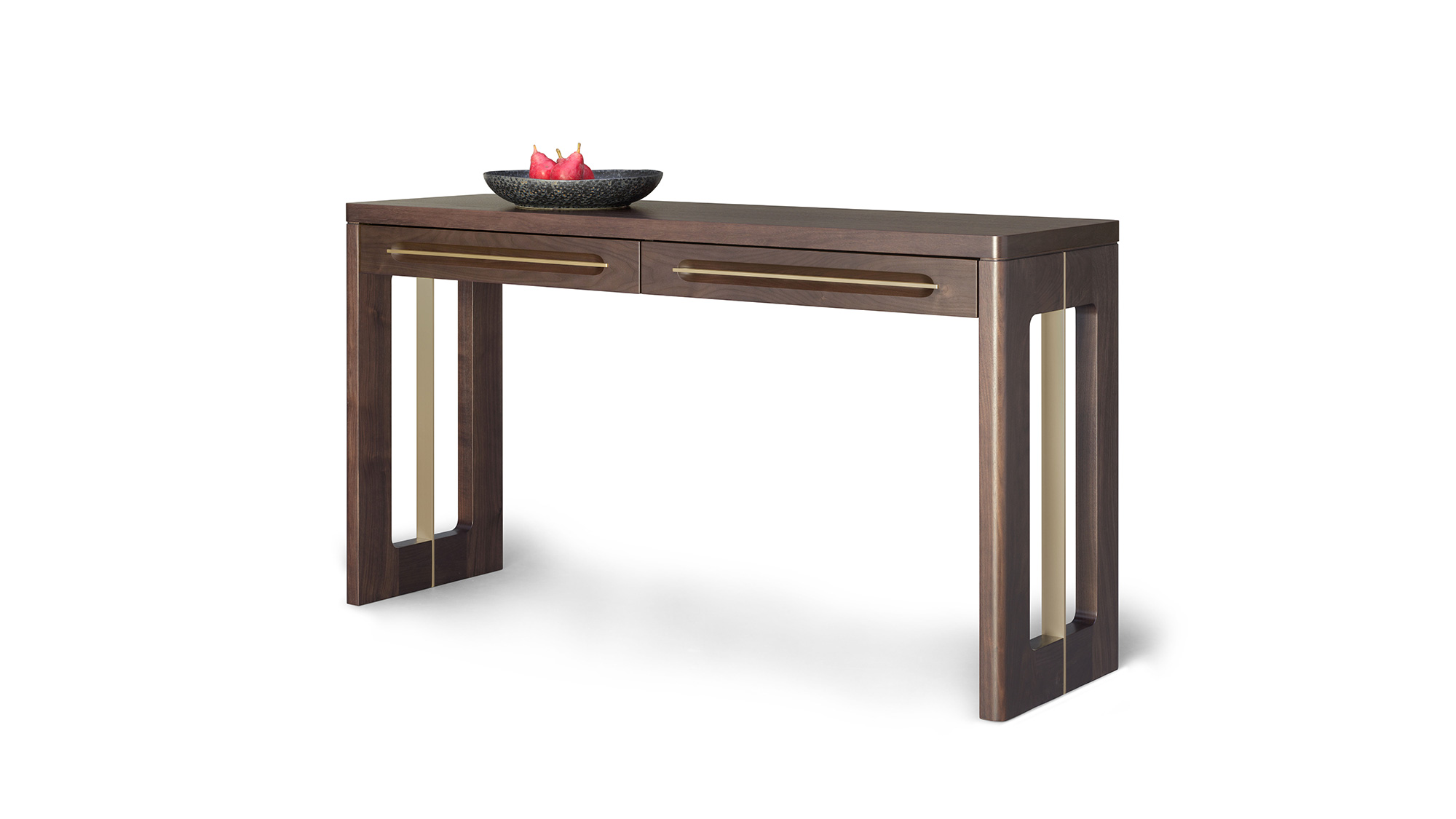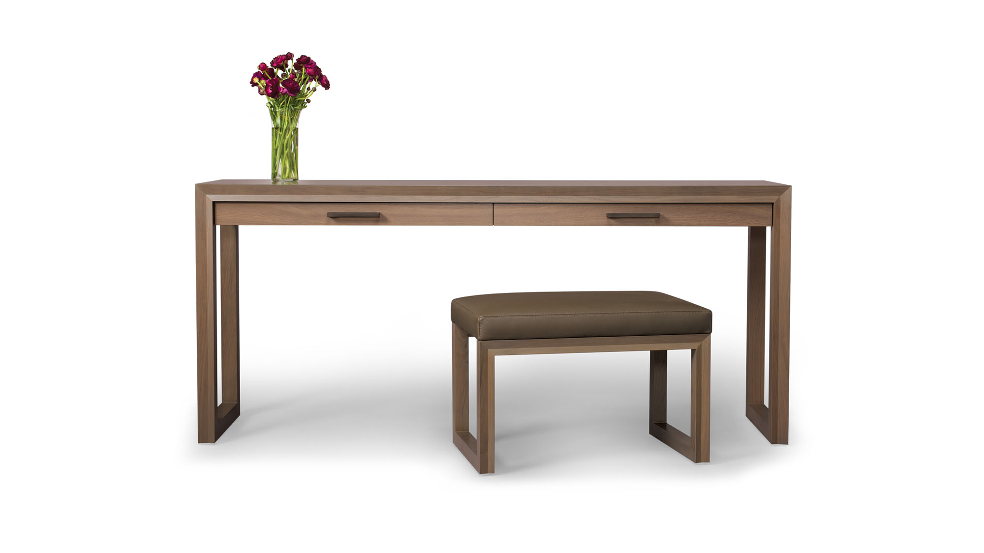 Shown in Fumed Oak with optional Satin Brass Inlay and Drawer - 60 W x 16 D x 32 H