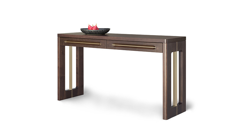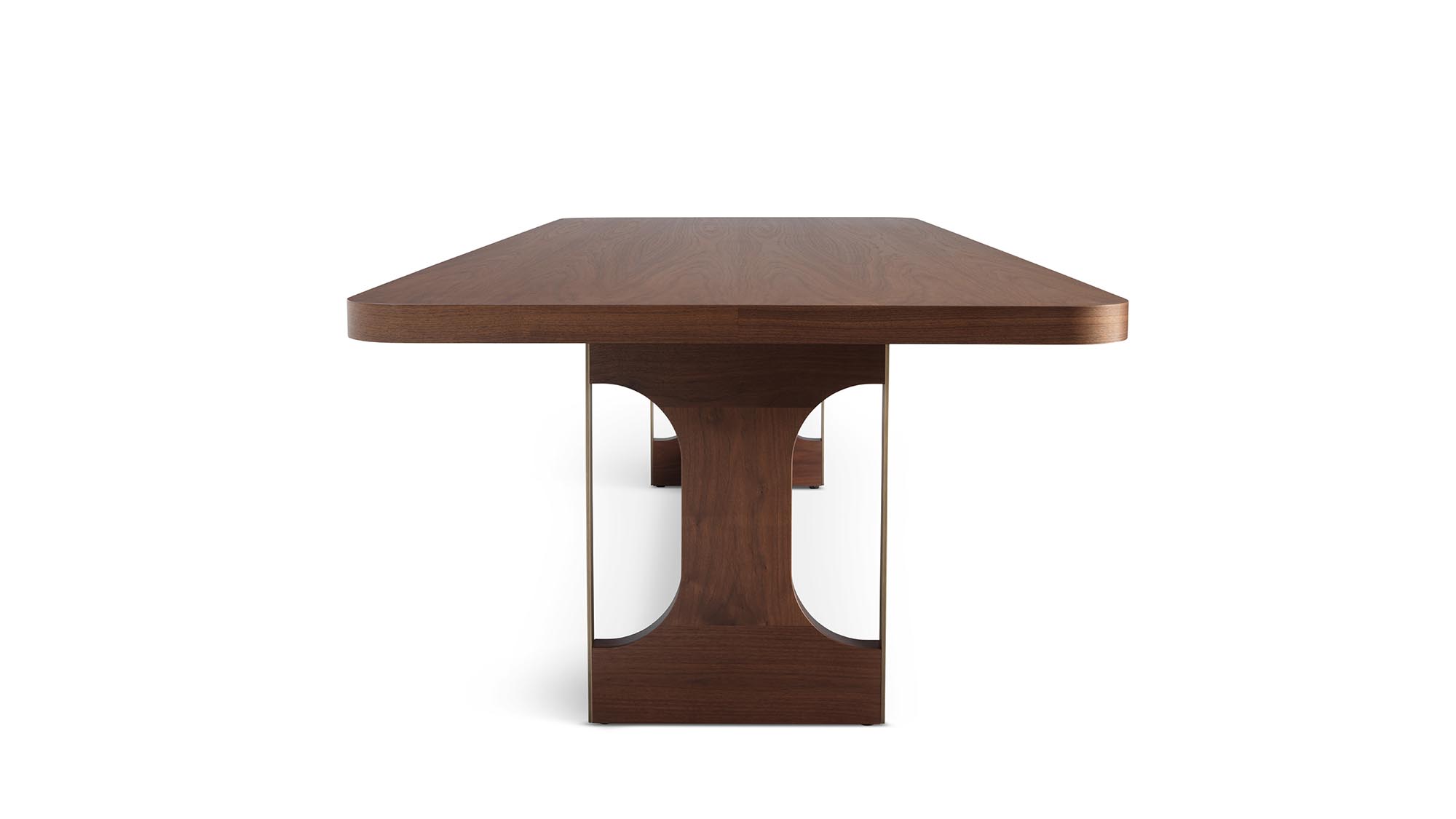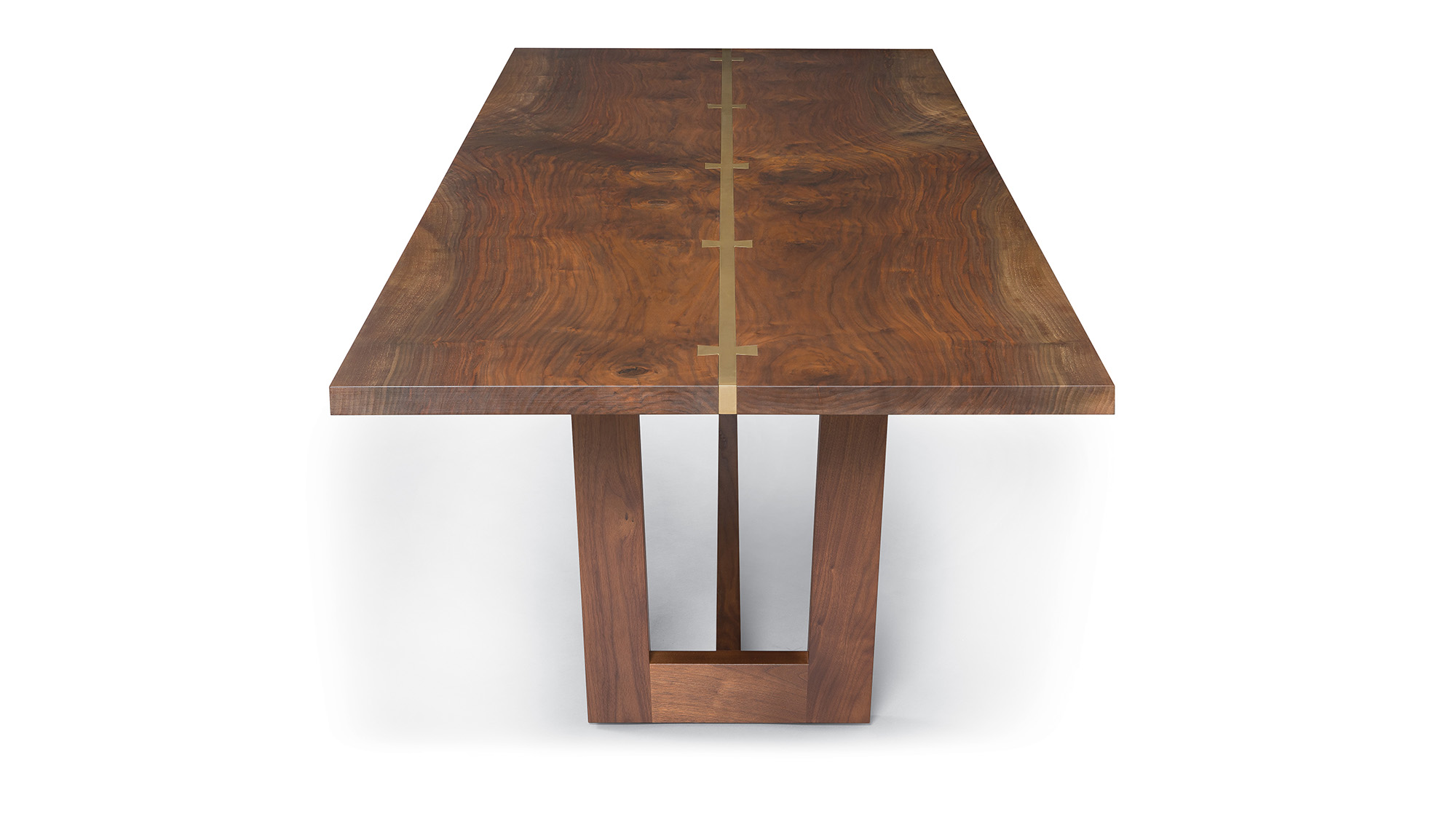 Shown in Terra Walnut with optional Medium Brass inlay - 84 W x 42 D x 29 1/4 H