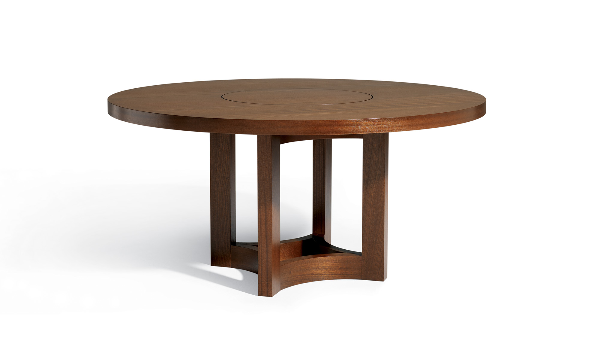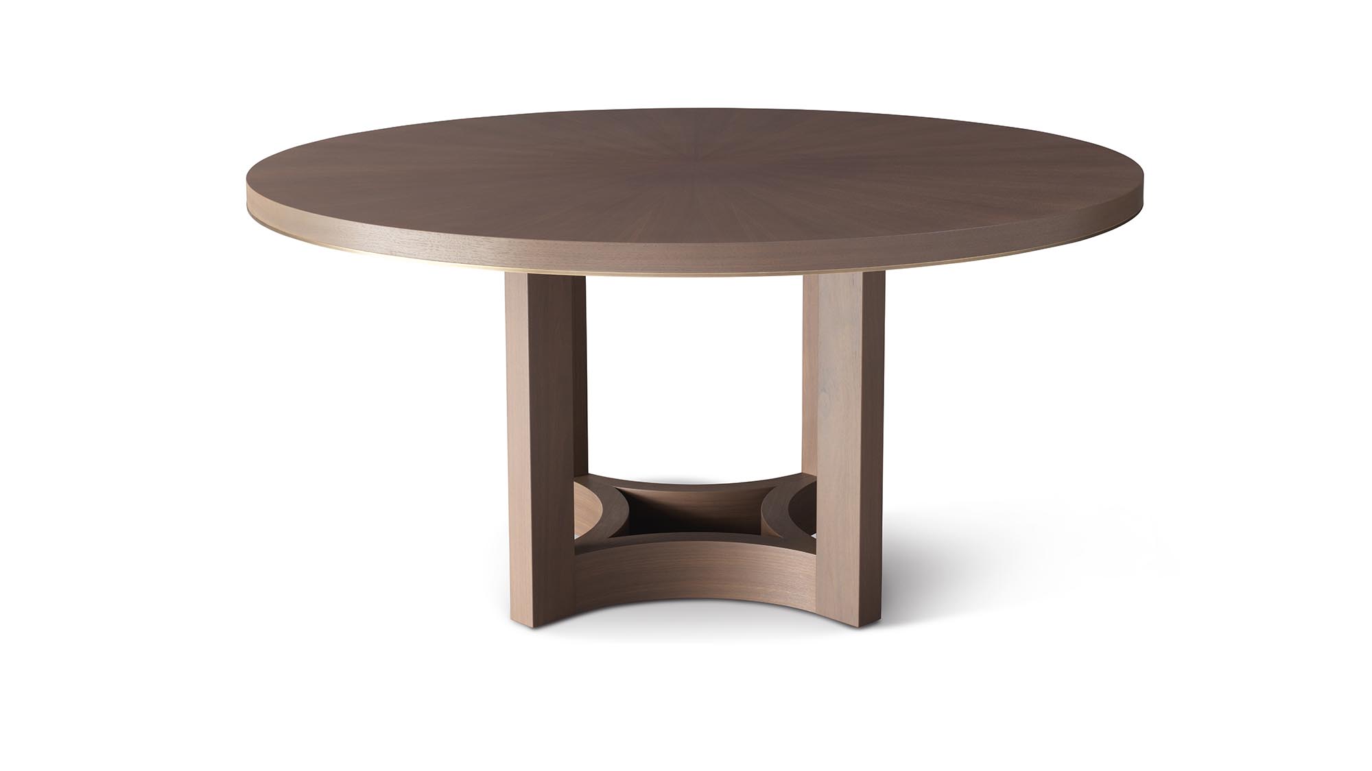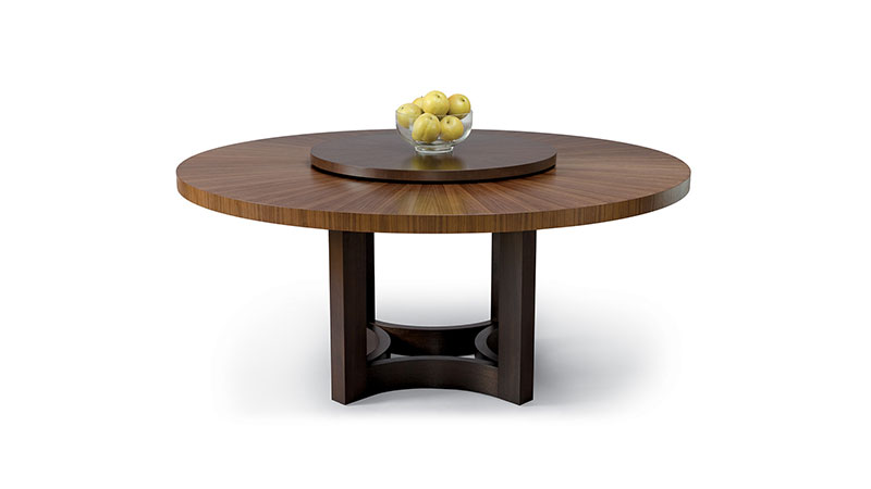 Shown in Grey Walnut Top with Optional Sunburst Veneer Pattern, Dark Walnut Base and Optional Lazy Susan - 66W x 66D x 29H