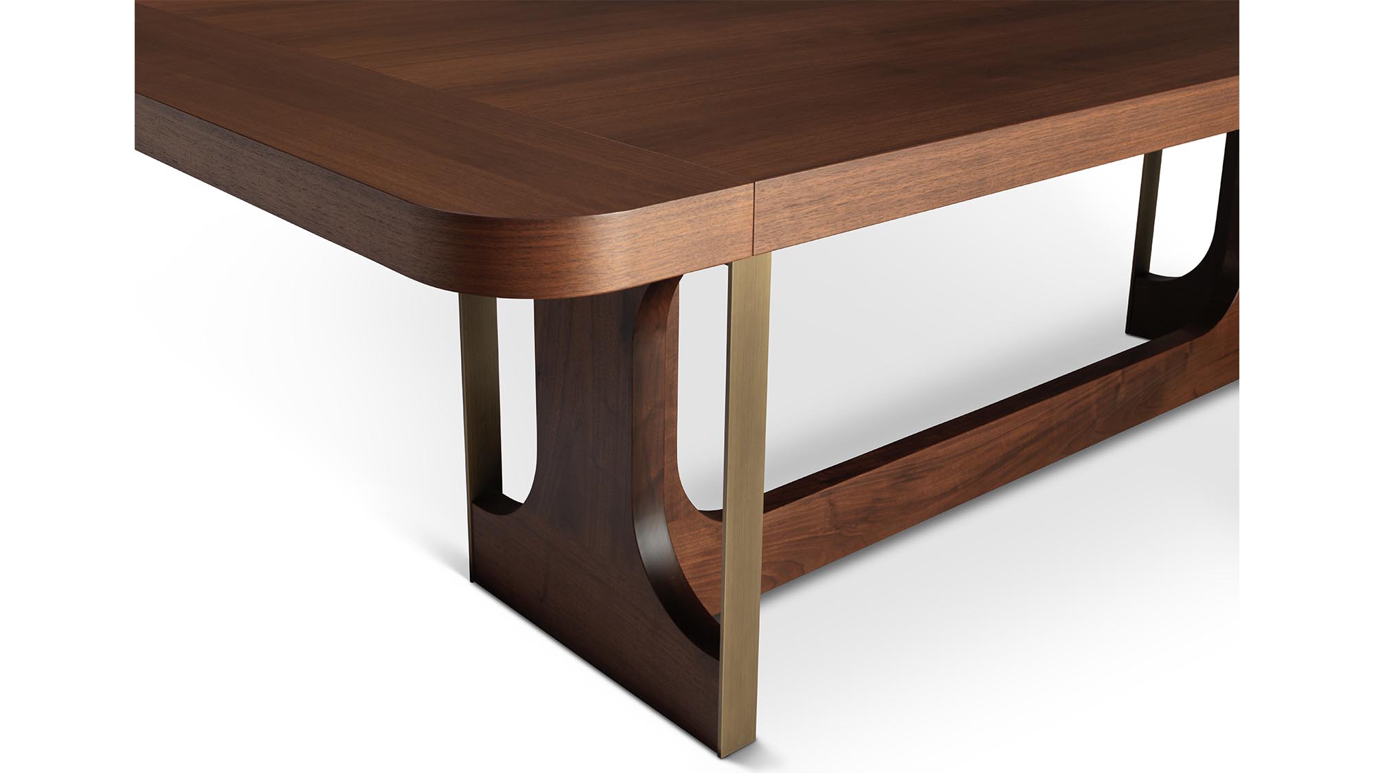Shown with optional Claro Walnut top, Brass Inlay and Claro Toned Walnut base - 96W x 42D x 29H - (128W with 2 Leaves)