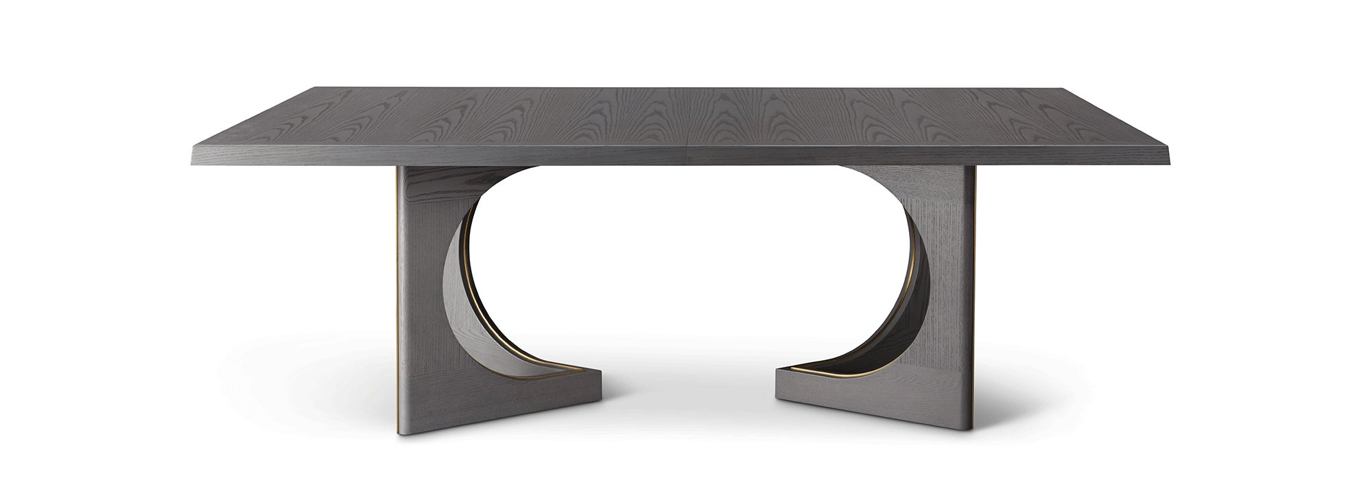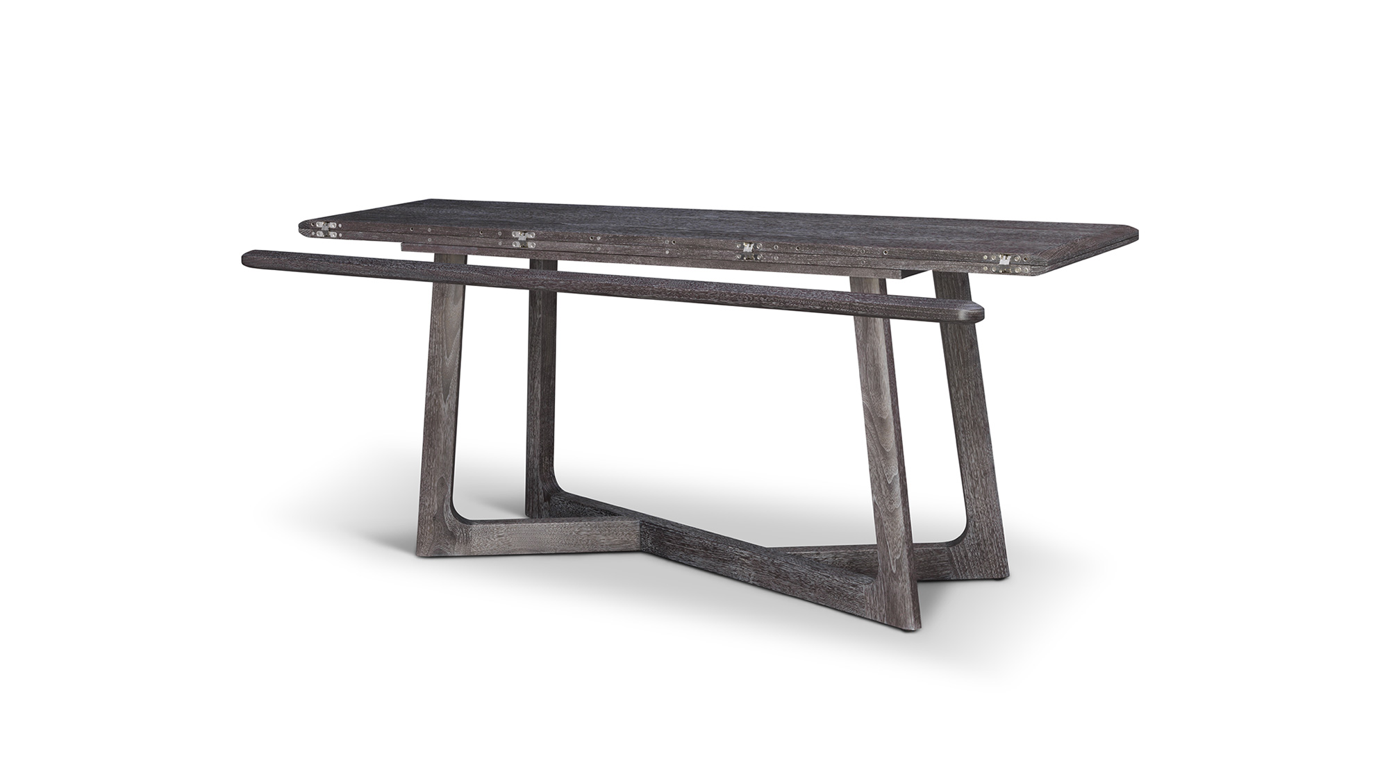 Extension Version shown in Cerused Grey Ash with optional Medium Bronze Inlay - 84W x 42D x 29H (108” w/1 Leaf, 132” w/2 Leaves)