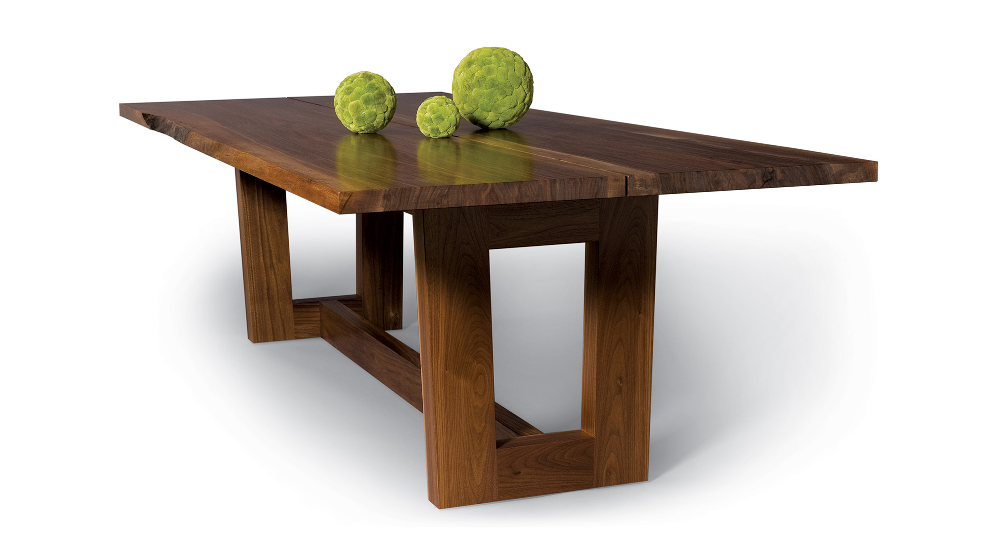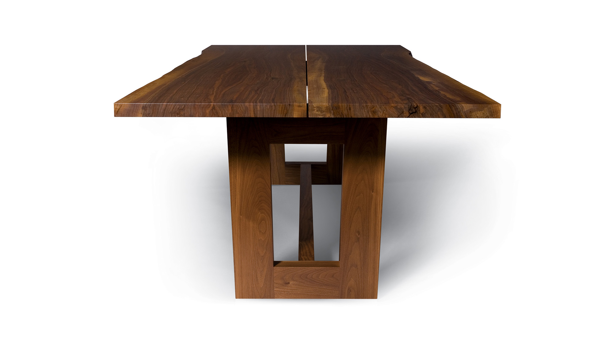 Shown in Walnut with optional live edge single slab Western Walnut table top - 84W x 40D x 29H