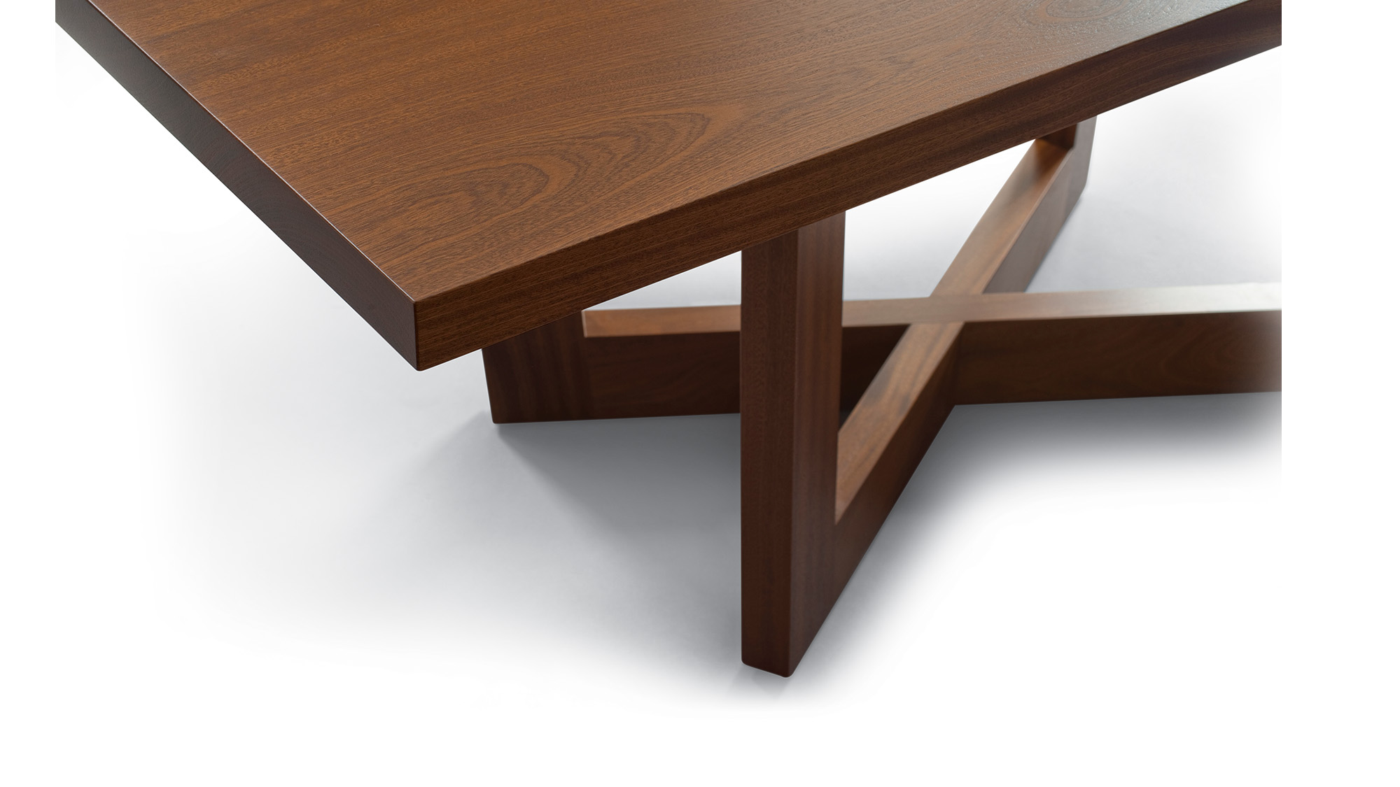 Shown in Walnut with optional solid wood top - 66W x 66D x 29H