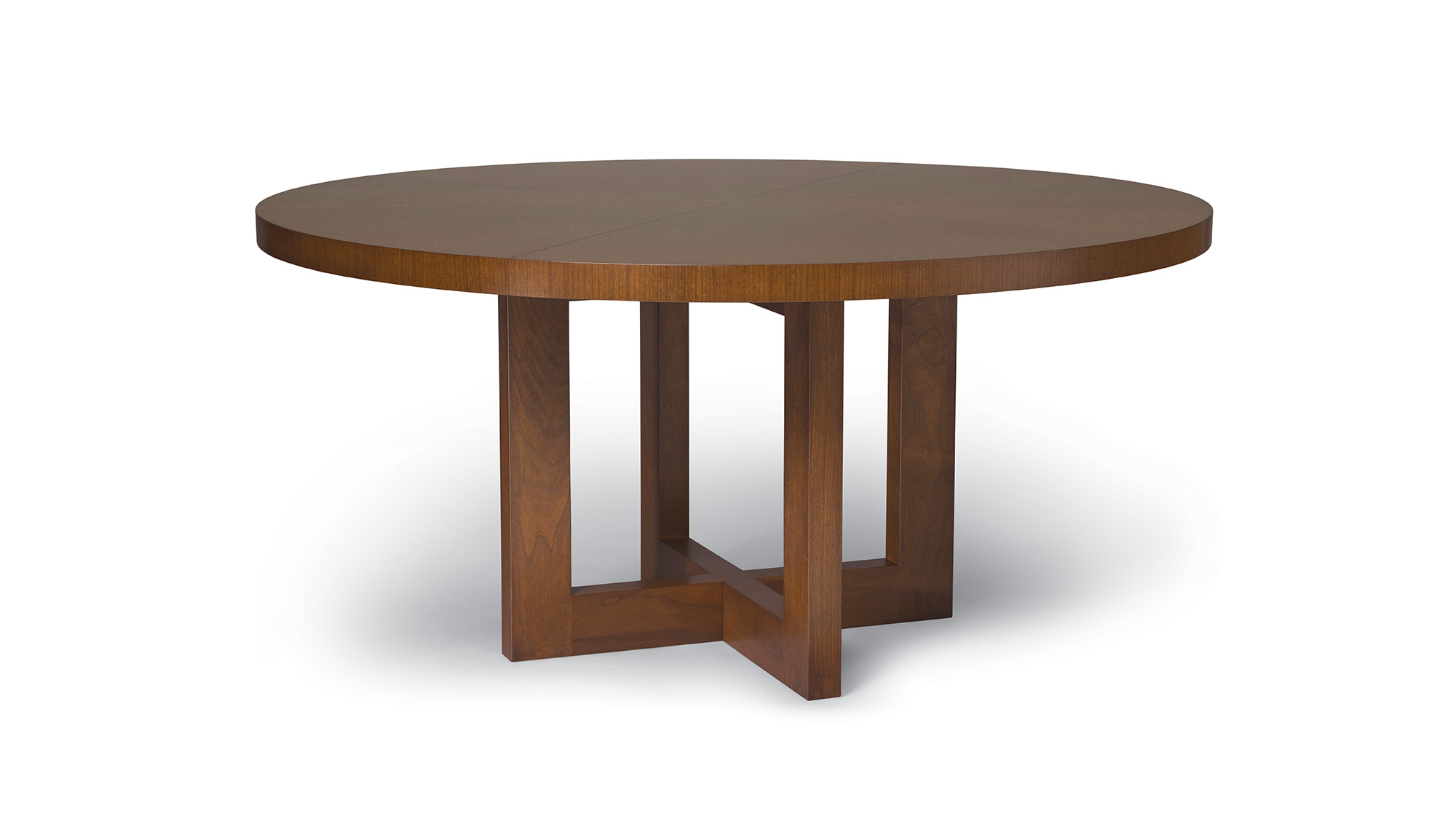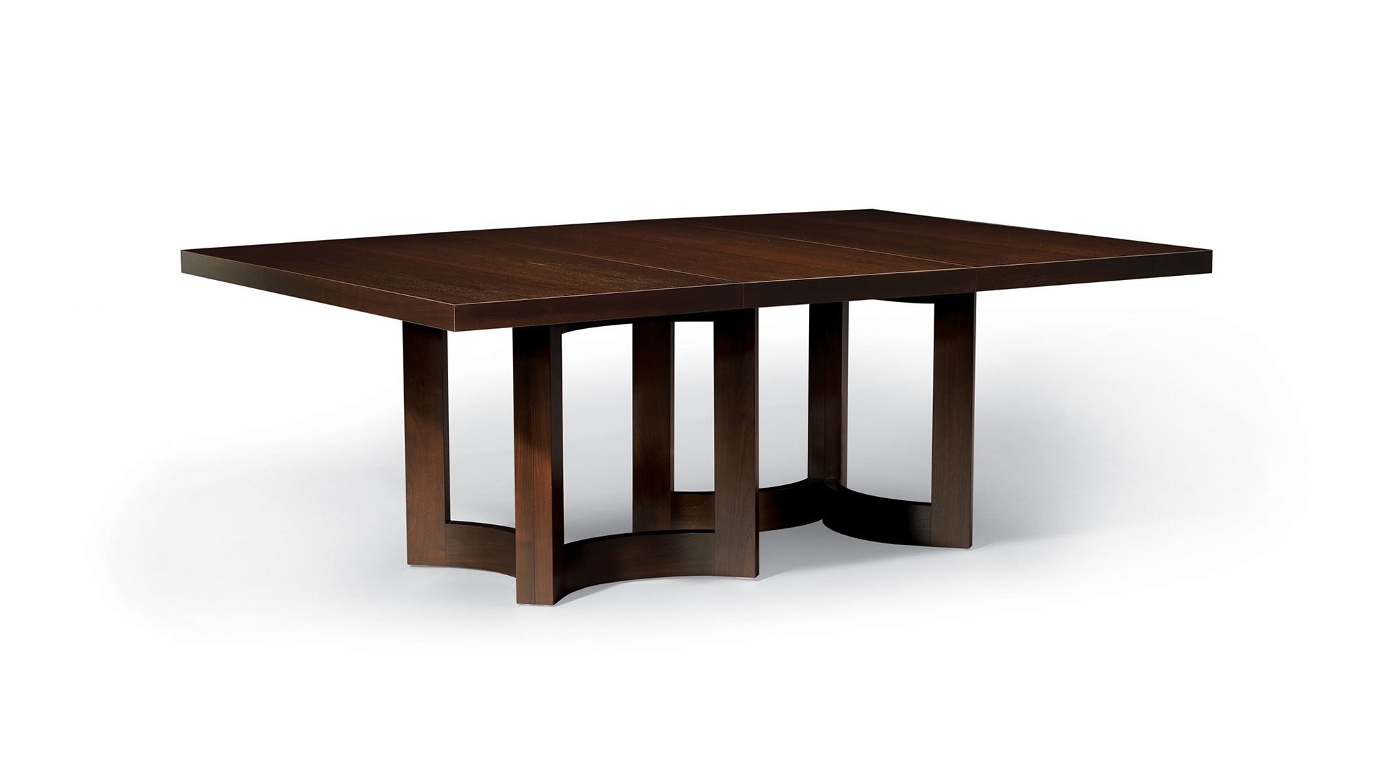 Shown in Fumed Oak with Dark Bronze metal inlay - 60W x 60D x 29H (84” w/1 LEAF, 108” w/2 LEAVES)